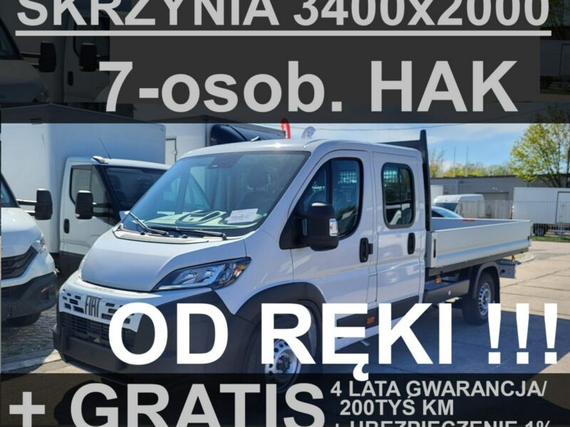 Fiat Ducato Skrzynia 3400x2000 L4H2 140KM 7-osobowy Hak Od ręki ! Super Cena